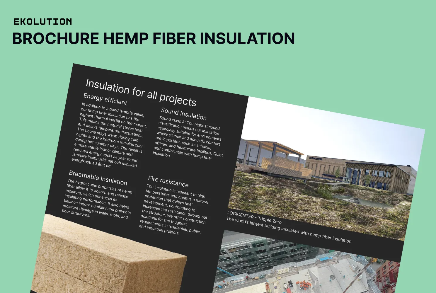 Ekolutions EPD (Environmental Product Declaration) is a certified and verified report that provides detailed information on the environmental impact of Ekolution® Hemp fiber insulation over its entire life cycle. From the manufacture of raw materials to the use and final dismantling of the product. This supports transparent comparisons and contributes to sustainable decisions in the construction sector.