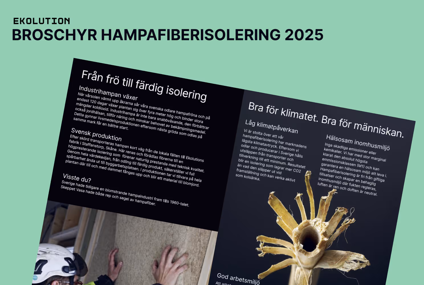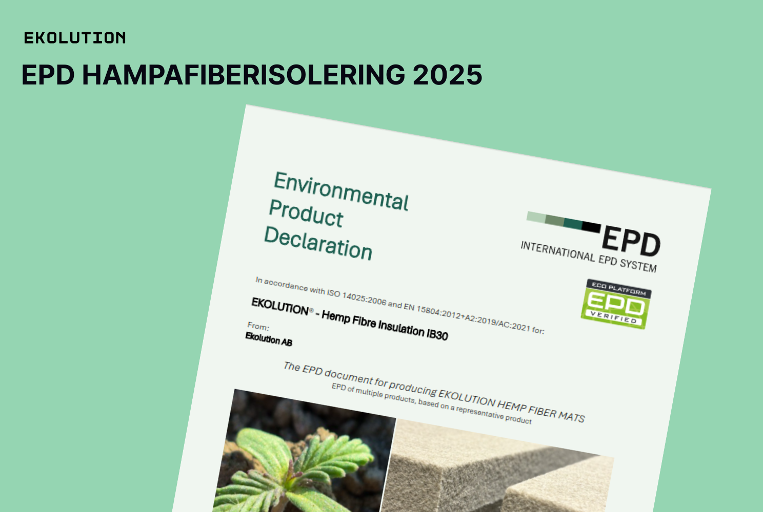 Ekolutions EPD (Environmental Product Declaration) är en standardiserad och verifierad rapport som ger detaljerad information om hampafiberisoleringens miljöpåverkan över hela dess livscykel. Från tillverkning av råmaterial till produktens användning och slutliga avveckling. Detta stöder transparenta jämförelser och bidrar till hållbara beslut inom byggsektorn.